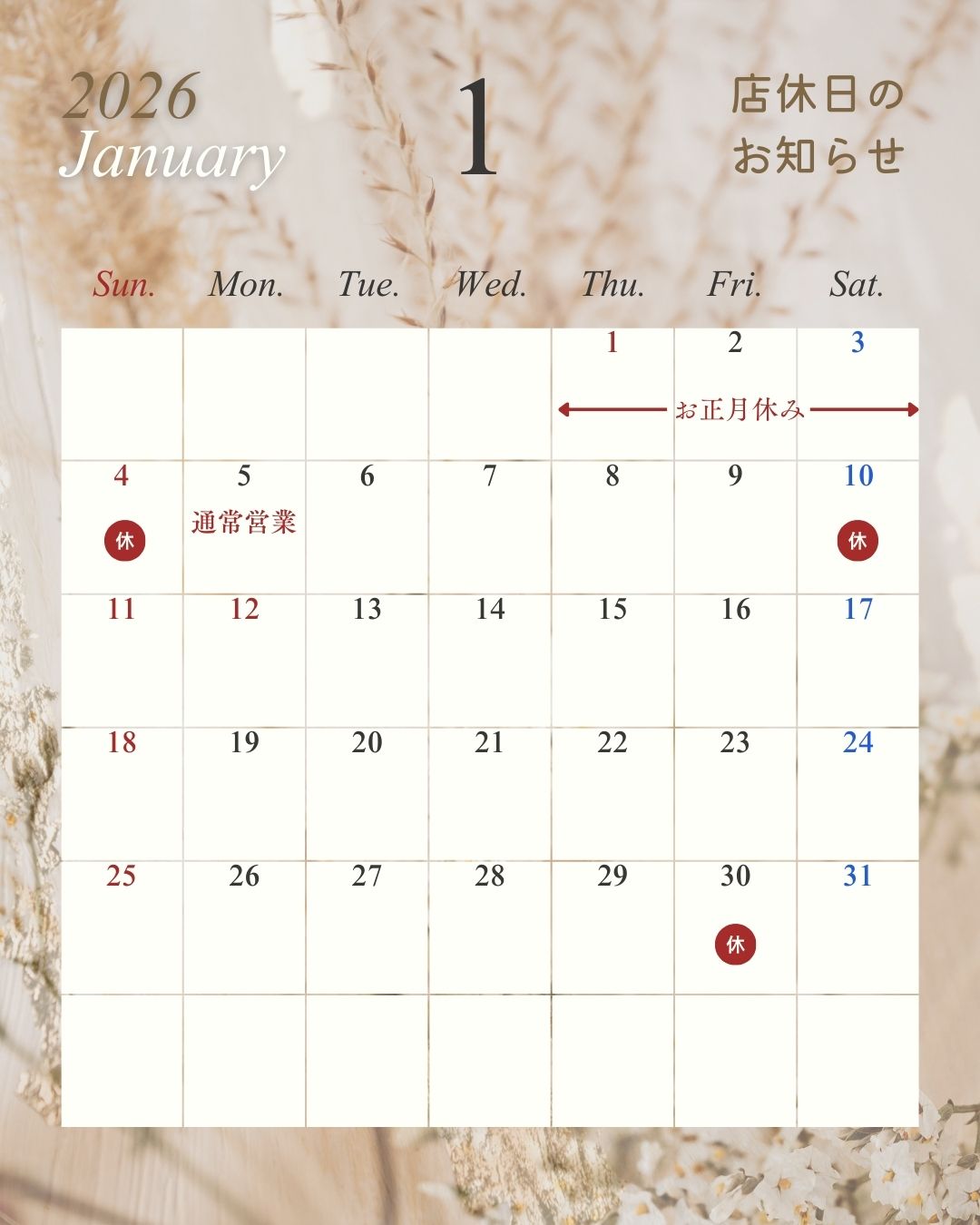 2026年も、皆さまにとって心地よい一年になりますように。